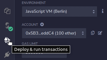 Screenshot of the Compile button. After Remix compiles the contract, deploy it. On the left side of Remix, click the Deploy and Run tab to view the deployment settings.