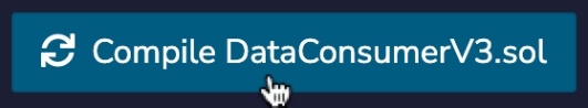 Screenshot showing the Compiler tab and its settings. Use the default compiler settings. Click the Compile DataConsumerV3.sol button to compile the contract. Remix automatically detects the correct compiler version depending on the