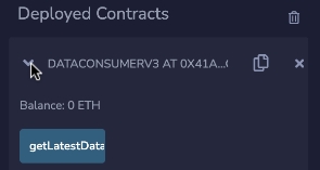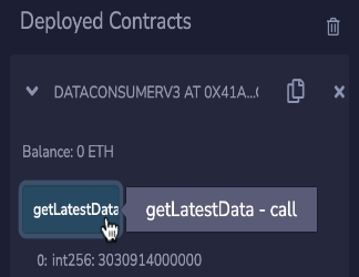Remix Deployed Contracts Section Click getChainlinkDataFeedLatestAnswer to show the latest answer from the aggregator contract. In this example, the answer is the latest price, which appears just below the button. The returned answer is an integer, so it is missing its decimal point. You can find the correct number of decimal places for this answer on the Price Feed addresses page by clicking the Show more details checkbox. The answer on the BTC / USD feed uses 8 decimal places, so an answer of